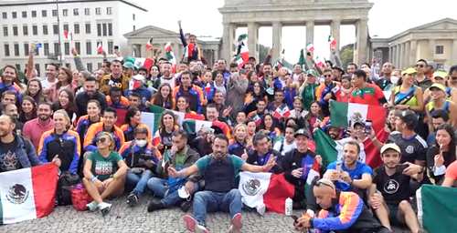 Los maratonistas mexicanos cantaron el popular tema de “Cielito Lindo” en la Puerta de Brandeburgo durante su viaje a Alemania. El grupo de mexicanos viajó
