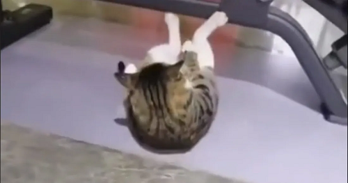 No sólo los humanos se quieren poner en forma, este gato también busca cuidar su salud con una rutina de abdominales y la motivación de