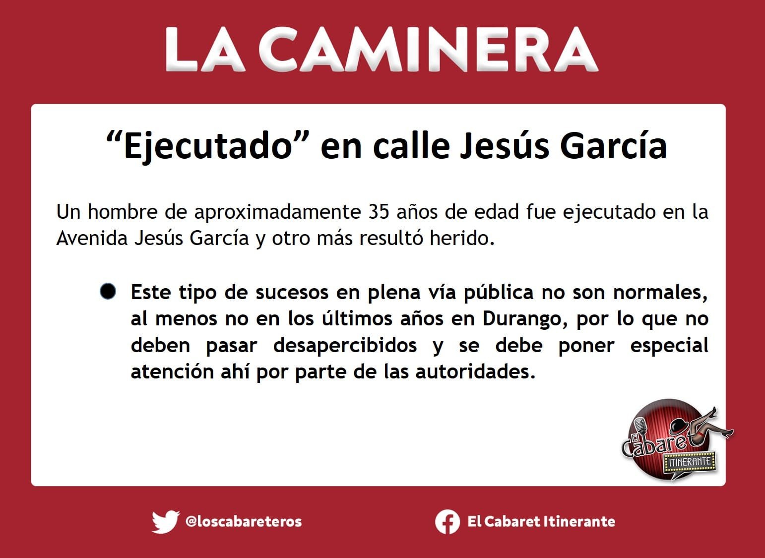 Un hombre de aproximadamente 35 años de edad fue ejecutado en la Avenida Jesús García y otro más resultó herido. Este tipo de sucesos en