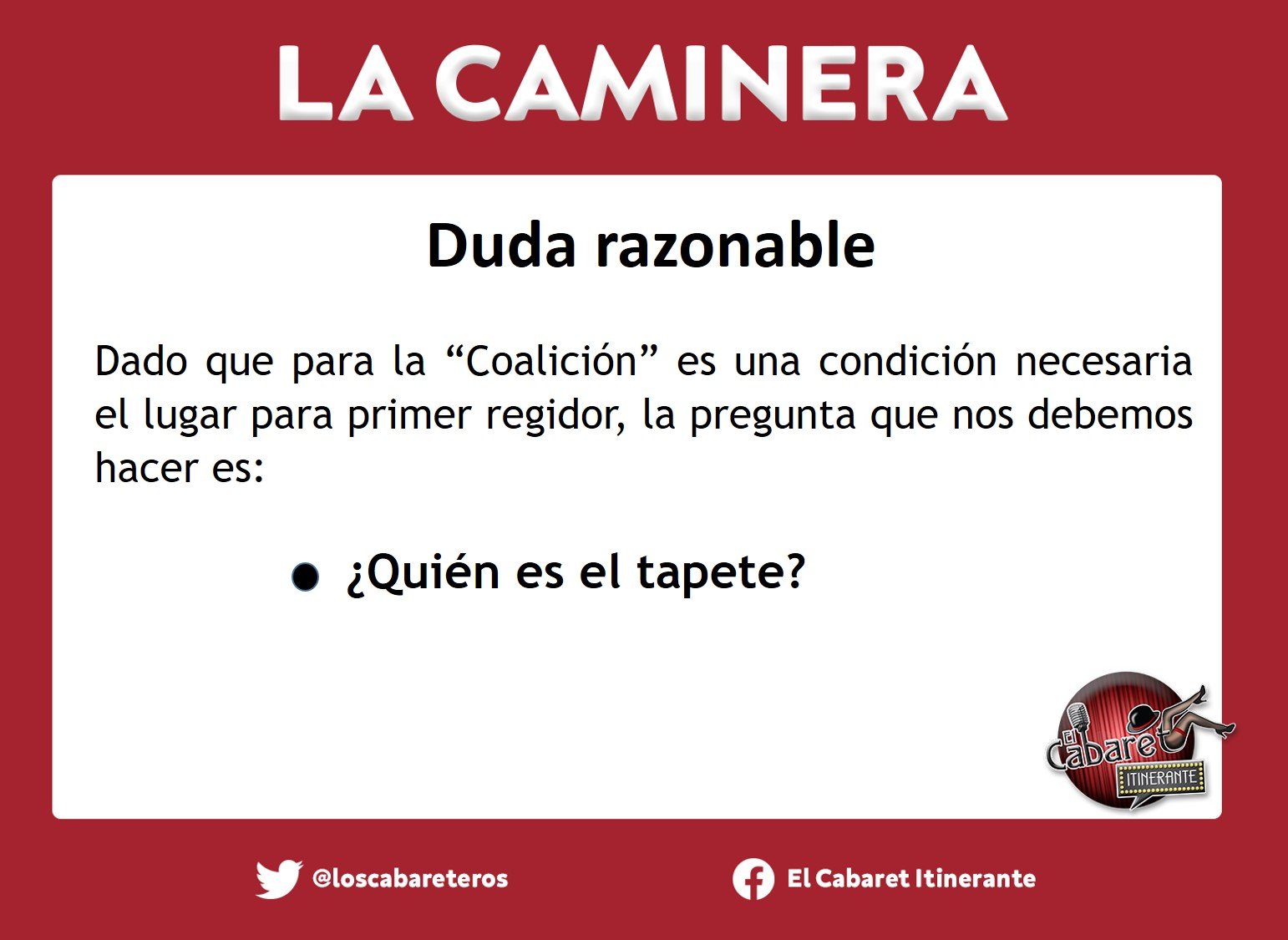 Dado que para la “Coalición” es una condición necesaria el lugar para primer regidor, la pregunta que nos debemos hacer es: ¿Quién es el tapete?