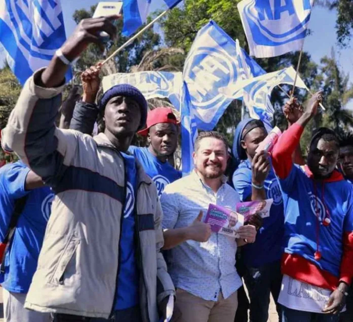 Varios migrantes de origen haitiano fueron vestidos con playeras blanquiazules y con el logotipo del Partido Acción Nacional (PAN) durante el cierre de precampaña del