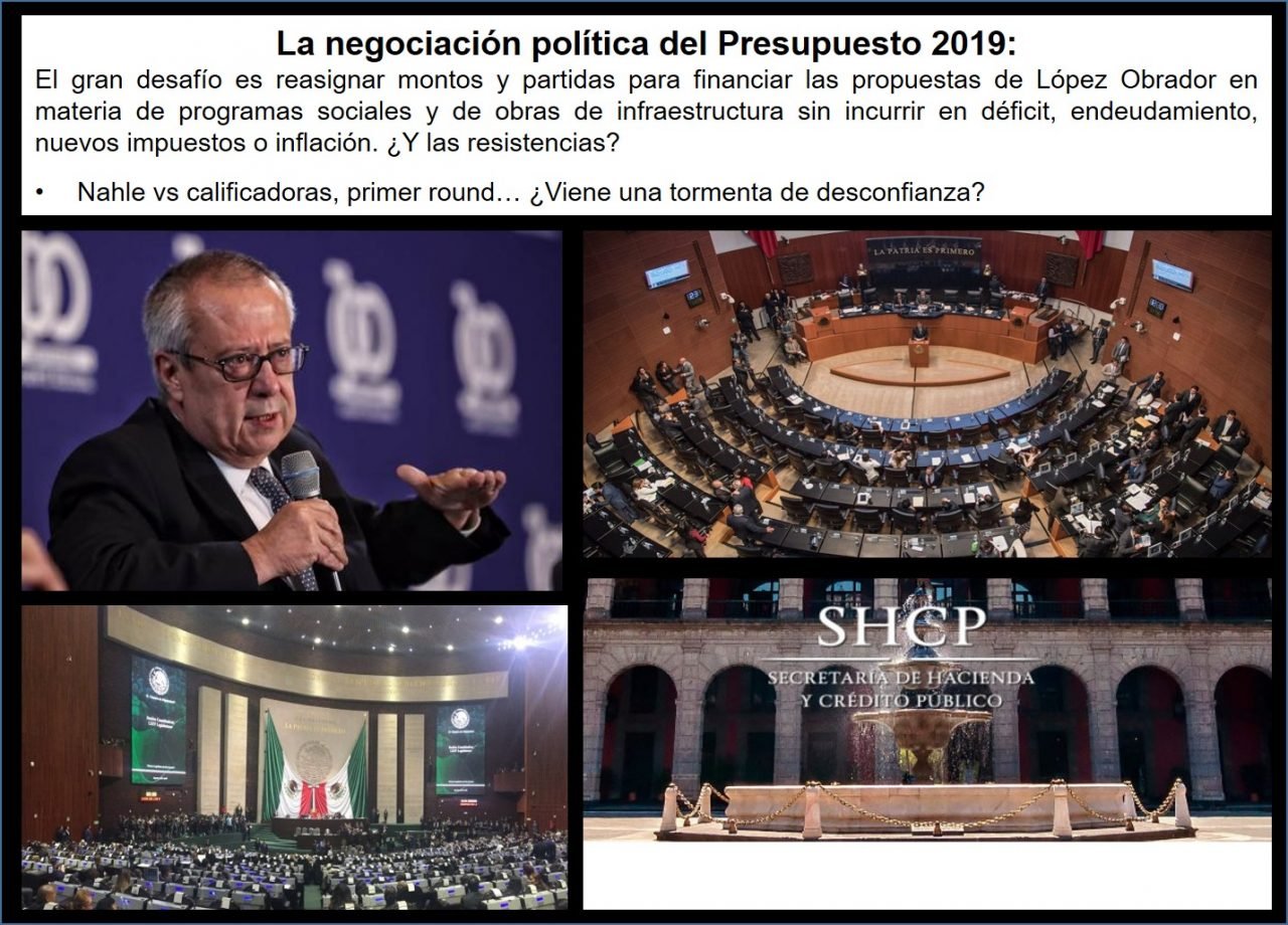 Desde la redacción de @loscabareteros ponemos a su consideración la “Columna de columnas nacional” del martes 23 de octubre de 2018. La negociación política del Presupuesto 2019: El gran desafío es reasignar montos y partidas para financiar las propuestas de López Obrador en materia de programas sociales y de obras de infraestructura sin incurrir en déficit, endeudamiento, nuevos impuestos o inflación. Nahle vs calificadoras, primer round… ¿Viene una tormenta de desconfianza?