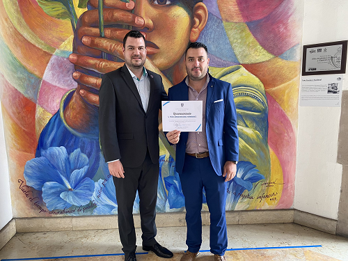 Hugo Nevárez, subdirector de Vinculación Social de la Dirección Municipal de Seguridad Pública (DMSP), recibió un reconocimiento a su labor. De manos del alcalde de