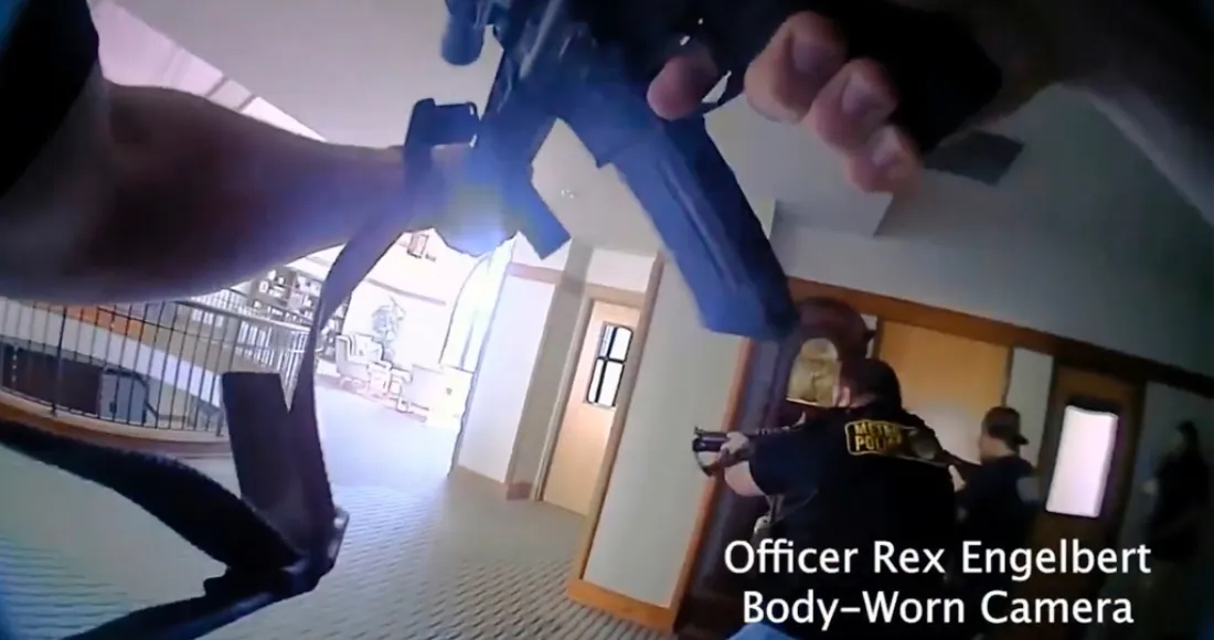La policía de Nashville divulgó el martes un video de una cámara corporal que muestra a los agentes entrando a una escuela y enfrentándose a