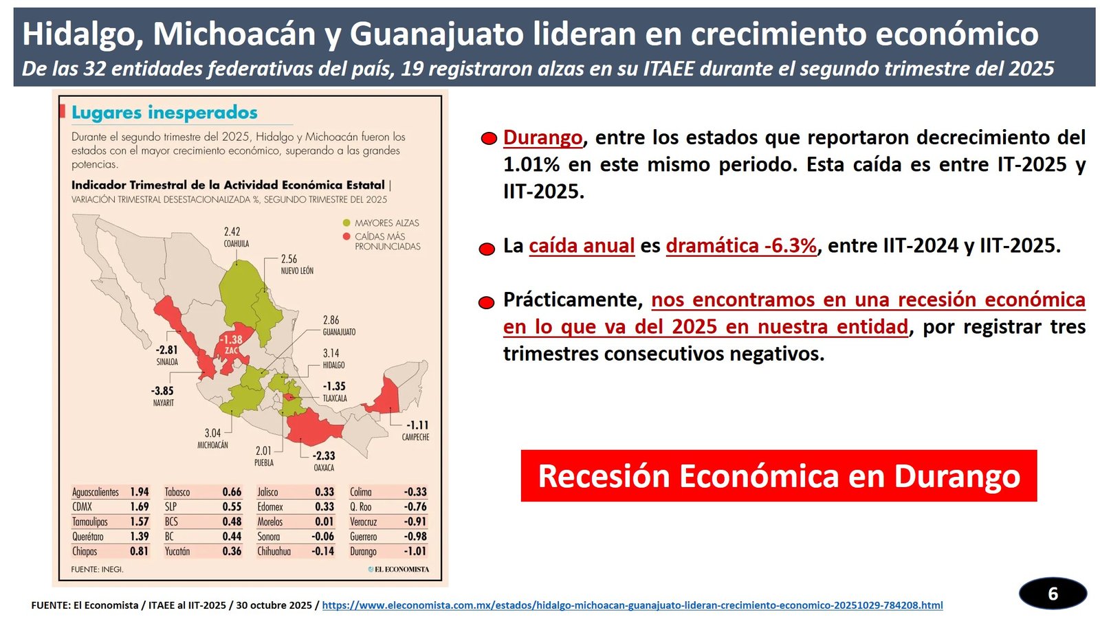 - Gráficas 1 y 2, Indicador de la Actividad Industrial por Entidad Federativa que muestra la deplorable situación en la generación de empleo por la que atraviesa Durango. Por supuesto que el único que no la ve es el propio Esteban Villegas y su gobierno.