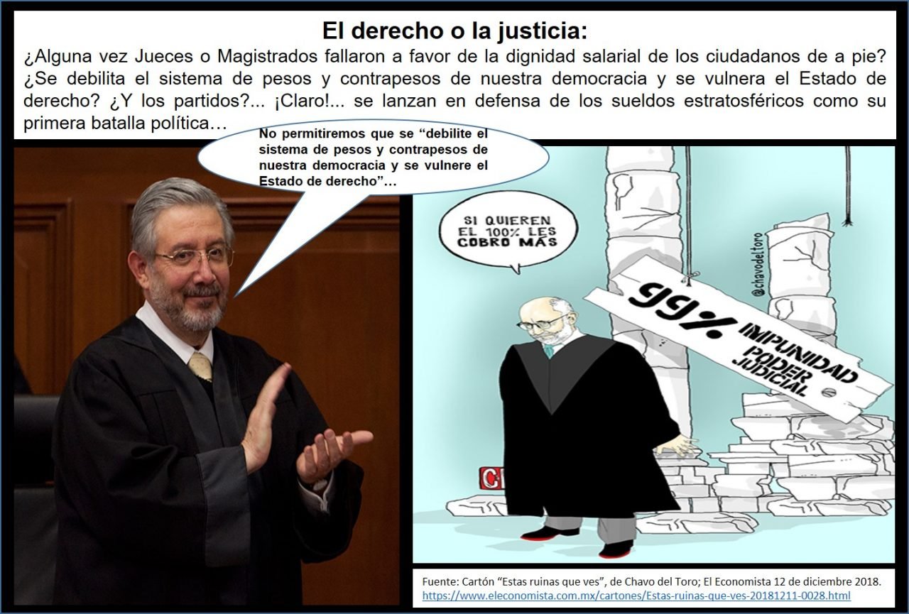 Hernán Gómez Bruera, en El Universal, escribe sobre la posición de la Corte: “Es evidente que hay inconsistencias en la Ley de Remuneraciones de los Servidores Públicos. Aunque se trata de respetar por primera vez el artículo 127 constitucional que establece la prohibición de ganar más que el presidente de la República, existe otra disposición–el artículo 94 constitucional– según la cual los sueldos de los jueces y ministros no pueden reducirse durante su encargo. (…) Probablemente muchas de las inconsistencias de la nueva ley obedecen a la velocidad con la que está legislando y tomando decisiones la Cuarta Transformación. Aquí y en otros frentes pareciera que, (…) la prisa y la improvisación podrían ser los grandes adversarios de la 4T. Aun así, la verdadera discusión no es de técnica jurídica o procedimental. El debate de fondo es político y de más largo aliento. Aquí, aunque el obradorismo pierda en las formas, es muy probable que al final aventaje en la disputa de fondo: la lucha de más largo aliento contra los privilegios, una cuyo norte es una noción de justicia para el común denominador de los ciudadanos. Si se considera el PIB per cápita, las percepciones de los funcionarios públicos en México llegan a representar más del doble del promedio de los países de la OCDE, sin contar bonos, sobresueldos, seguros privados, etc… y son tres veces más altas que en Estados Unidos. Un juez de la Suprema Corte en Estados Unidos –cuyo mandato es vitalicio– gana en torno a seis salarios mínimos; en México perciben hasta 130 veces el valor del mínimo. En un país donde el salario mínimo no ha alcanzado siquiera a cubrir el valor de la canasta básica, jueces y magistrados suenan totalmente desapegados de la realidad, sino es que ridículos, al invocar el derecho humano a un “salario digno”. ¿Alguna vez fallaron a favor de la dignidad salarial de los ciudadanos de a pie? Es imposible no leer conflicto de interés cuando la Corte, actuando como juez y parte, suspende la Ley Federal de Remuneraciones o cuando la CNDH –otro organismo autónomo cuyo presidente percibe 198 mil pesos mensuales– interpone una acción de inconstitucionalidad en contra de una reducción de privilegios y canonjías que evidentemente le tocarán directamente a él y a sus funcionarios. (…) Cómo tomarse en serio a la Asociación Nacional de Magistrados de Circuito y de Jueces de Distrito cuando (…) denunciaban que el propósito de fondo de la ley de remuneraciones es “debilitar el sistema de pesos y contrapesos de nuestra democracia y vulnerar el Estado de derecho”. ¿Alguien los escuchó hablar en esos términos cuando en septiembre de 2004 el ministro presidente de la SCJN, Mariano Azuela, se reunía con Vicente Fox para “intercambiar puntos de vista” sobre el futuro desafuero de AMLO? (…) ¿Y qué decir de esos llamados “partidos de oposición” que, en el extremo de la degradación moral y la falta de brújula hacen de la defensa de los sueldos estratosféricos de los altos funcionarios su primera batalla política del sexenio? Cabría preguntarse si esto no los llevará a acentuar aún más su descrédito”.