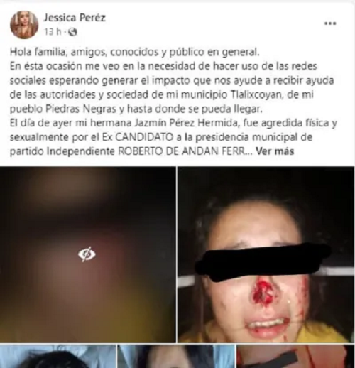 Mientras, la hermana de la víctima, publicó en su cuenta de Facebook lo que le sucedió a Jazmín, ya que el presunto agresor está escondido y su familia no ha respondido por los gastos médicos.