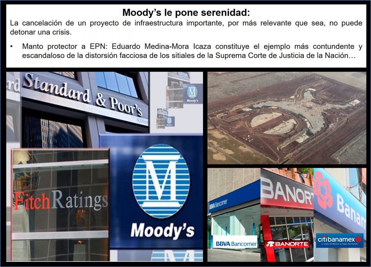 Enrique Quintana, en El Financiero, escribe acerca de la reacción de Moodys respecto a la decisión de López Obrador: “Cuando una de las principales agencias calificadoras del mundo, Moody’s, convoca a una conferencia, en el contexto que vivíamos ayer, muchos pensábamos que se trataba de la puntilla para nuestro peso. Se especulaba que quizás se iba a anunciar que la deuda mexicana sería puesta nuevamente en perspectiva negativa luego de que en abril se pasó de negativa a estable. El dólar interbancario ya había llegado a 20.47 y en los bancos estaba a 20.75 pesos, así que parecía que una acción de Moody’s podría llevarlo a 21 pesos fácilmente. Pero, las cosas fueron diferentes. En lugar de una degradación de la perspectiva de los bonos mexicanos, la calificadora ratificó la calificación y su percepción de mediano plazo. Desde luego, Jaime Reusche, quizás el experto más influyente de la calificadora respecto a México, señaló que la cancelación del proyecto del aeropuerto era una muy mala noticia para las inversiones, pues abre una etapa de incertidumbre. Sin embargo, un cambio en la calificación de riesgo, a su juicio, necesitaba más que ese hecho. La atención, en el futuro, estará puesta esencialmente en los temas fiscales. Ellos serán los realmente determinantes del riesgo de la deuda pública en México. Y luego de que se emitió ese juicio, se detuvo la depreciación de nuestra moneda frente al dólar, que al final regresó a niveles de 20.31 pesos la tarde de ayer, es decir, 16 centavos menos que el máximo de unas horas antes. Como le comentamos reiteradamente aquí, la cancelación de un proyecto de infraestructura importante, por más relevante que sea, no puede detonar una crisis. Lo que realmente movió a los mercados fue el temor de que venga un gobierno que tome decisiones ideológicas, que las legitime a través de consultas y que desestime el impacto económico que puedan tener. Esa es la razón por la que el dólar se encareció en casi 5 por ciento en lo que llevamos de esta semana. Pero, esos hechos definen también una ruta para remediar las cosas. Si AMLO y su equipo logran convencer a inversionistas y empresarios de que este no va a ser un patrón recurrente; si le creen a Carlos Urzúa en su señalamiento de que el Presupuesto de 2019 contendrá un superávit primario de 0.8 por ciento del PIB, entonces quizás veamos que las aguas realmente se calmen y que los ánimos se serenen… aunque dudo que el dólar baje de 20 pesos en el corto plazo. Moody’s dio una lección de madurez, porque en lugar de sumarse a las descalificaciones prefirió esperar. Mucho ayudaría al país que hubiera esta actitud serena y objetiva. Cuando se observan redes sociales, o las opiniones de actores económicos relevantes, se nota la carga de subjetividad que siempre provoca AMLO. Por un lado, están sus detractores que le van a cuestionar hasta la manera en la que viste o el tono de su voz; y del otro lado, están sus apologistas, que van a apoyarlo, con independencia de que pueda proponer medidas irracionales. Necesitamos partidarios críticos, que lo defiendan en función de la racionalidad de sus acciones y críticos que –como Moody’s– puedan ponderar sus juicios. Es difícil mantener la cordura en tiempos de encono, pero más nos vale que lo hagamos”.