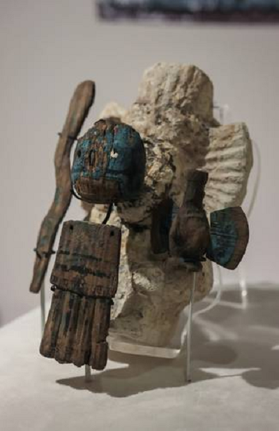 La muestra inédita reúne 114 piezas arqueológicas hechas con dicho material, como máscaras, cetros, esculturas, instrumentos musicales y armamento.