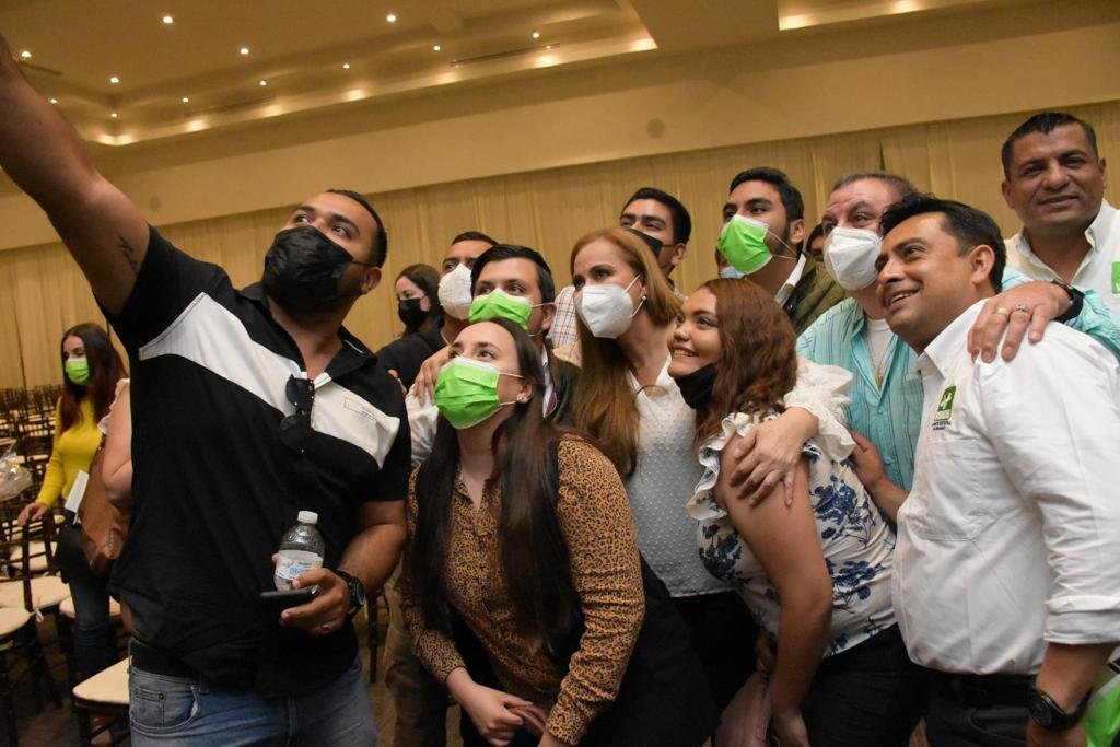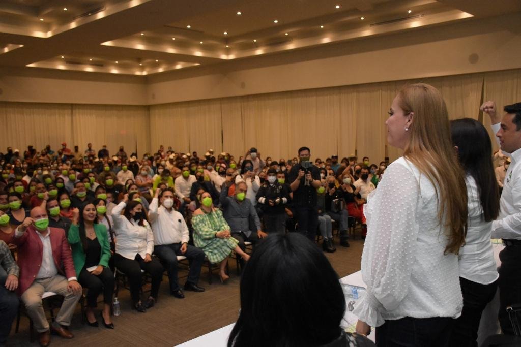Ante el secretario Técnico del Comité de Elecciones del Comité Ejecutivo Nacional del Verde, Sergio Martínez, Marina Vitela, mostró su agradecimiento por el respaldo a los ahí presentes, primordialmente a Karent, quien siempre ha estado dispuesta a trabajar por un mismo objetivo y en equipo.